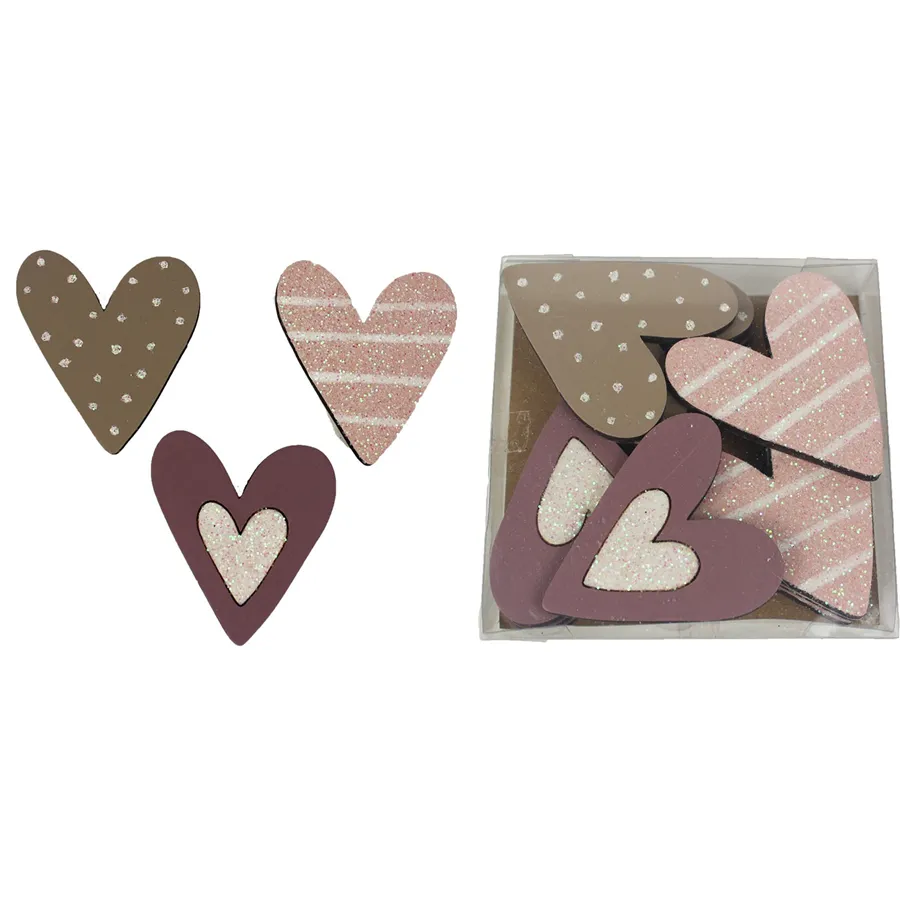 Set contains 12 pcs. Color: pink, brown, purple. Material: alternative to wood.