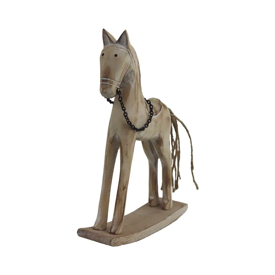 Small decorative horse. Dimensions: 14 × 4 cm, height 20.5 cm. Color: combination of brown and white. Wood-based material.