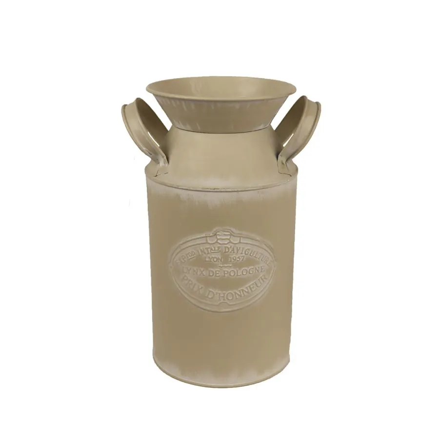 Decorative tin watering can. Dimensions : 17 x 13 cm, height 25 cm. Colour : beige. Material : metal.