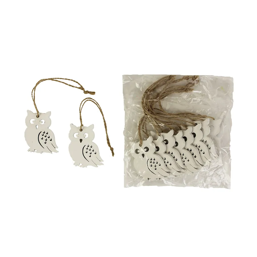Set of decorative owls for hanging. The set contains 10 owls. Dimensions: 4 x 0.4 cm, height 5 cm. White color. Material: MDF.