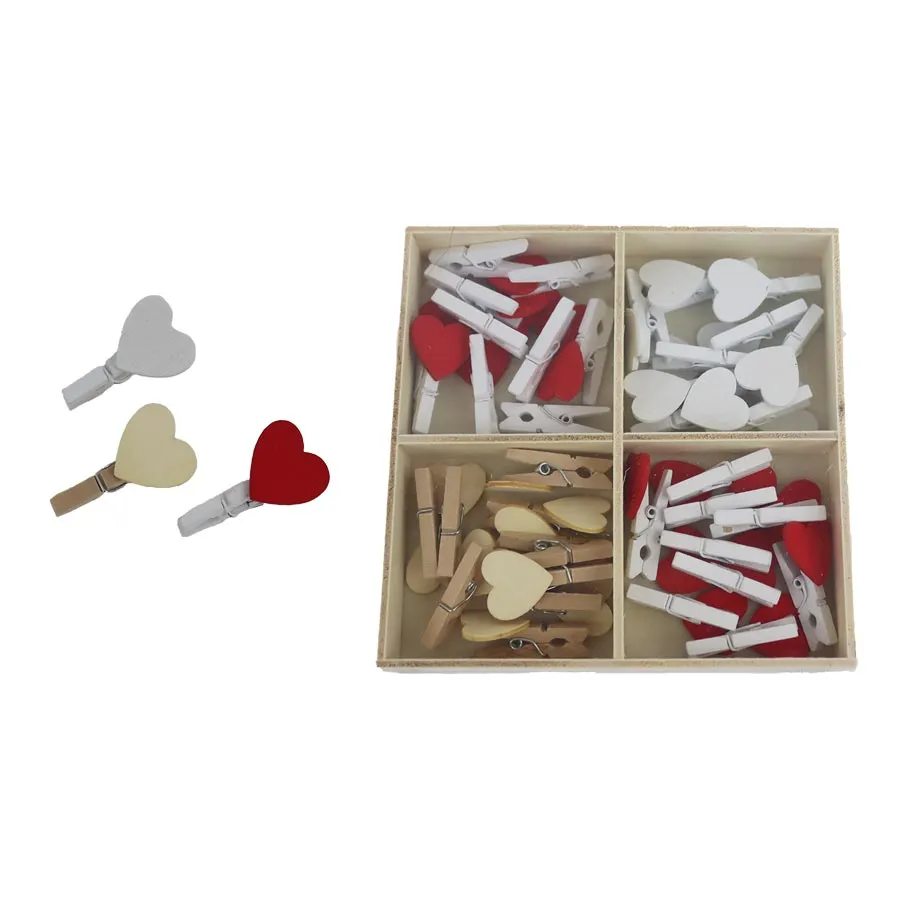 Set of decorative pegs. The set contains 36 pegs. Dimensions: 1.8 x 3.2 cm, height 1 cm. Color: combination white, red. Wood-based material.
