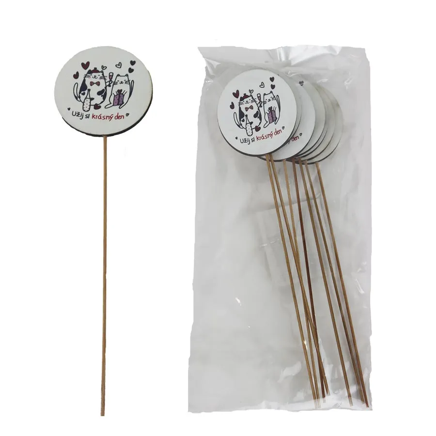 Decorative pick with cats and inscription Užij si krásný den, 8 pcs D7868