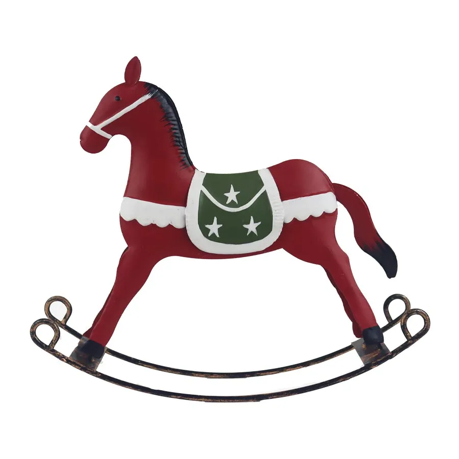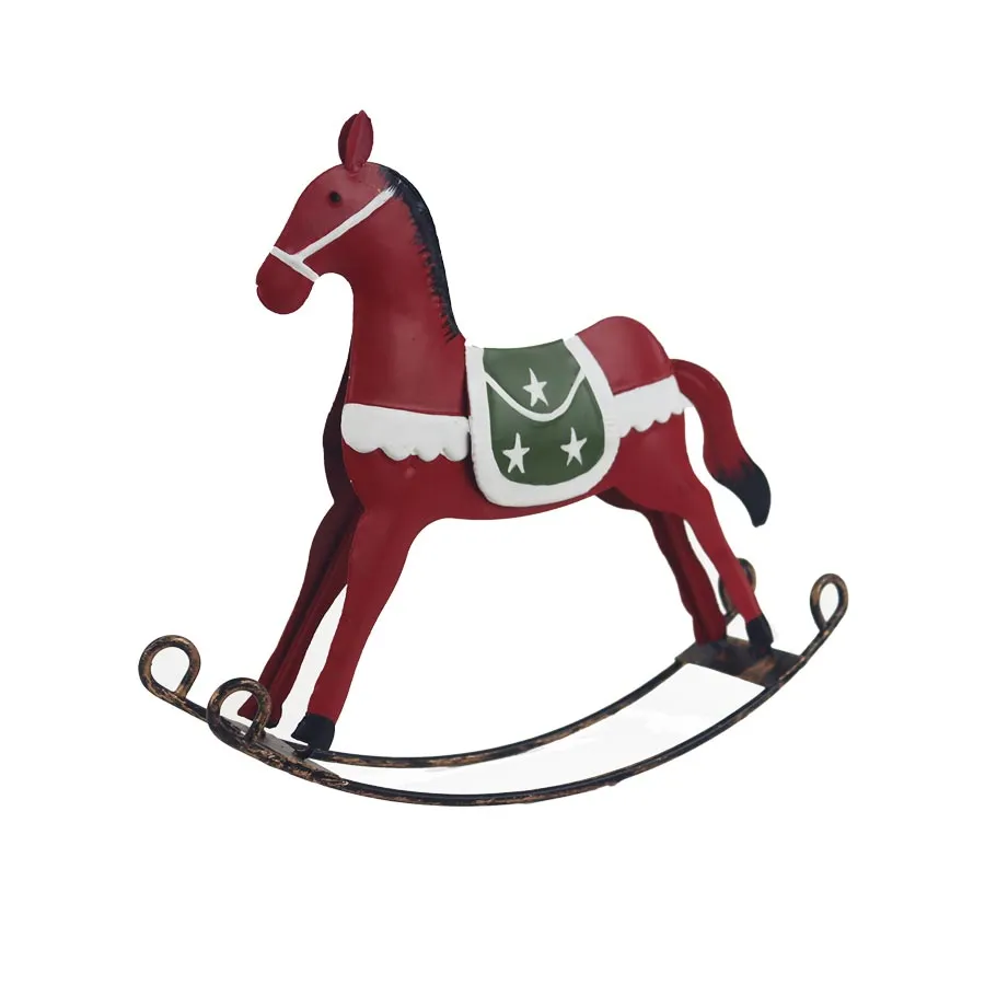 Decorative horse. Dimensions: 21 × 4 cm, height 18 cm. Color: combination of red, white, green. Material: metal.