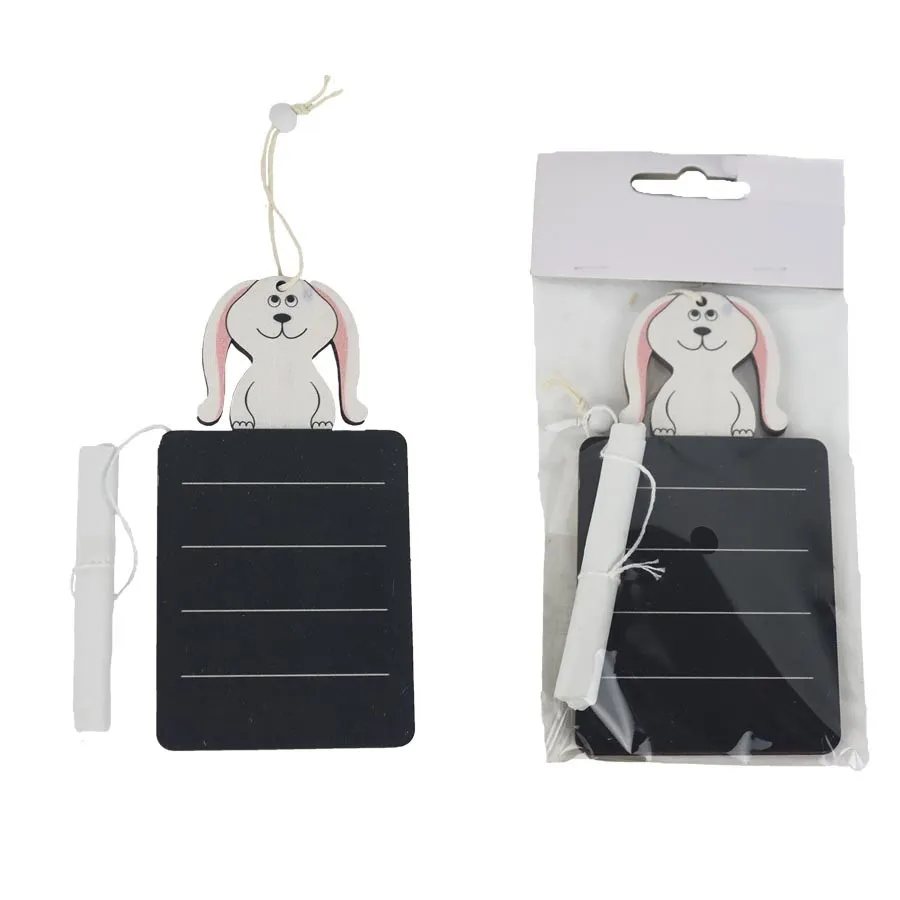 Decorative blackboard with chalk. Dimensions: 6.6 x 0.4 cm, height 13 cm. Color: combination of black, white, yellow. Wood-based material.
