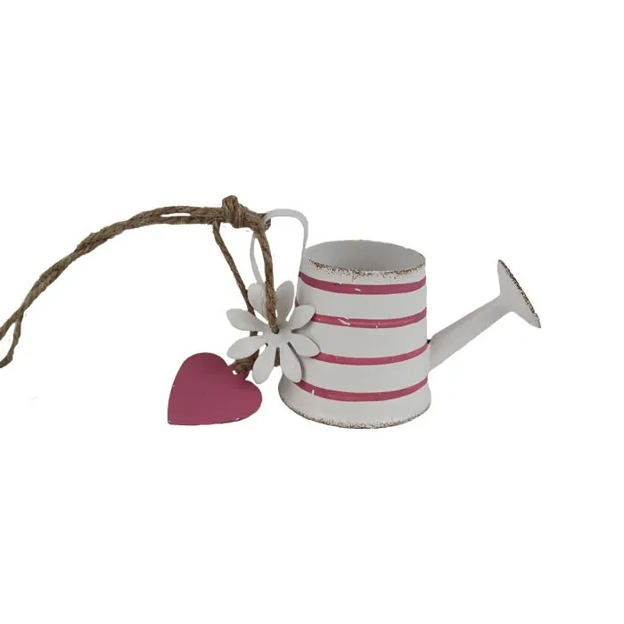 Decorative teapot for hanging. Dimensions: 5.2 × 4.3 cm, height 8.5 cm. Color: combination of white and pink. Material: metal.