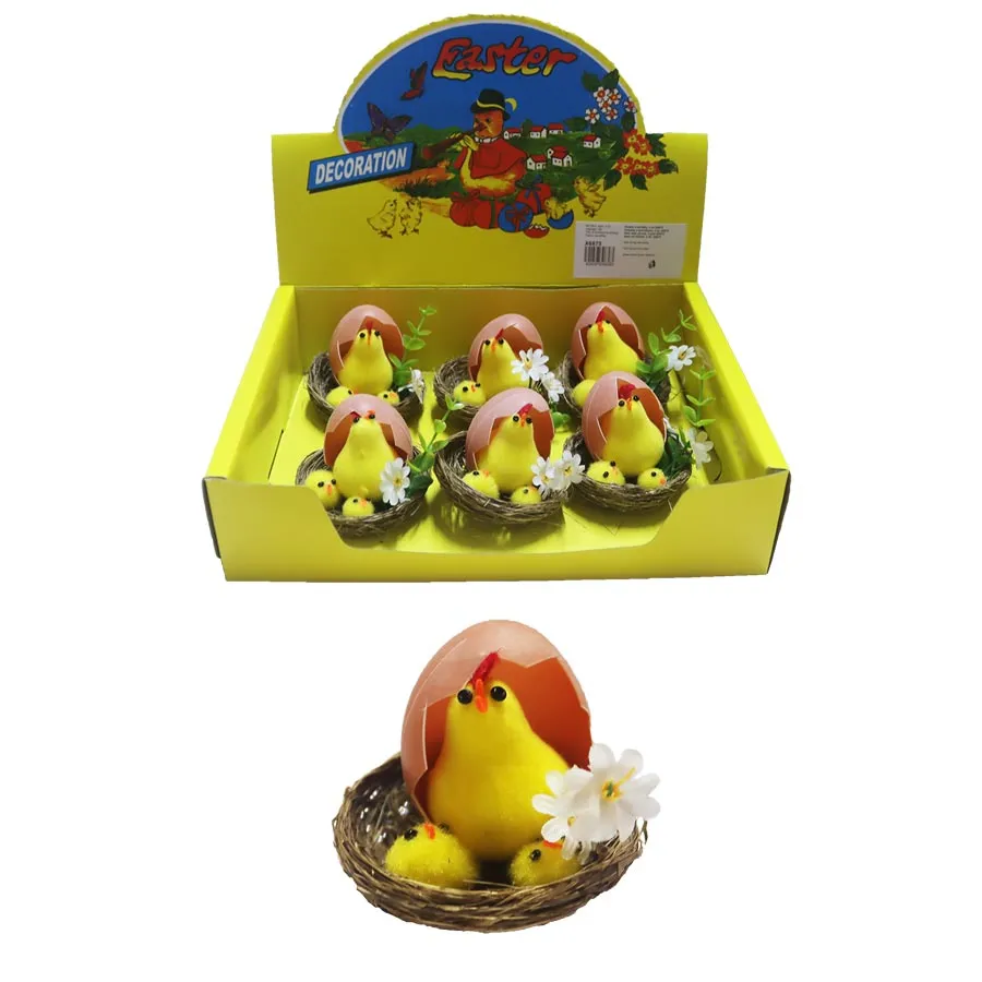 Easter decoration box mix hen and chicks, 6 pcs X7656