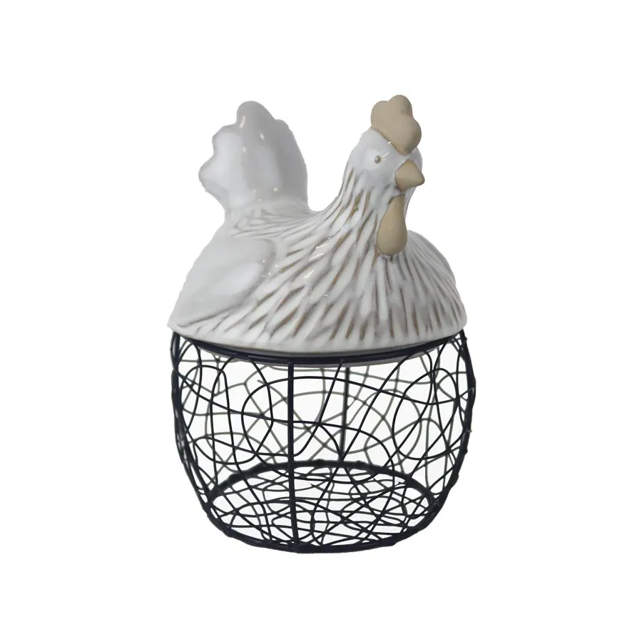 egg basket with a ceramic hen as a lid — a very popular decoration for the kitchen or for the Easter season.