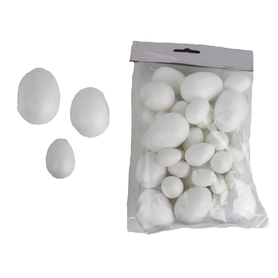 Set of decorative polystyrene eggs mix. The set contains 48 eggs. Dimensions: diameter 2.5 - 4 x 3.5 - 5.5 cm.