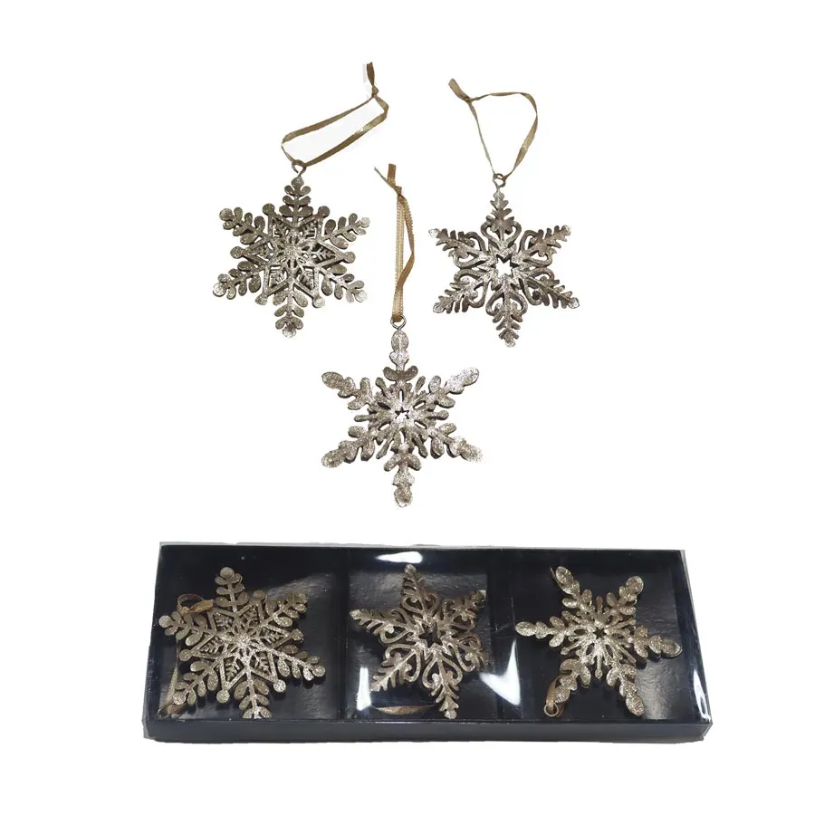 Set of decorative flakes for hanging. The set contains 3 flakes. Dimensions: Color: Gold. Material: metal.