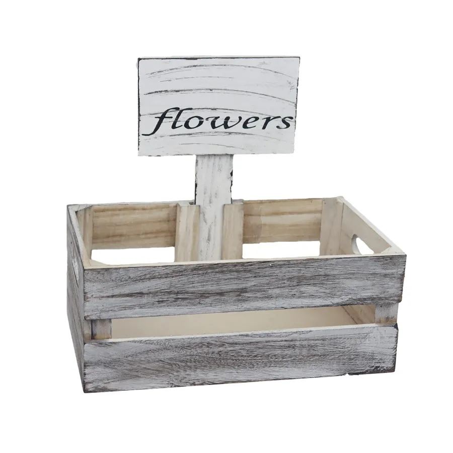Decorative flower box FLOWERS. The large box has dimensions: 30 x 19 cm, height 12 cm. Grey color. Wood-based material.