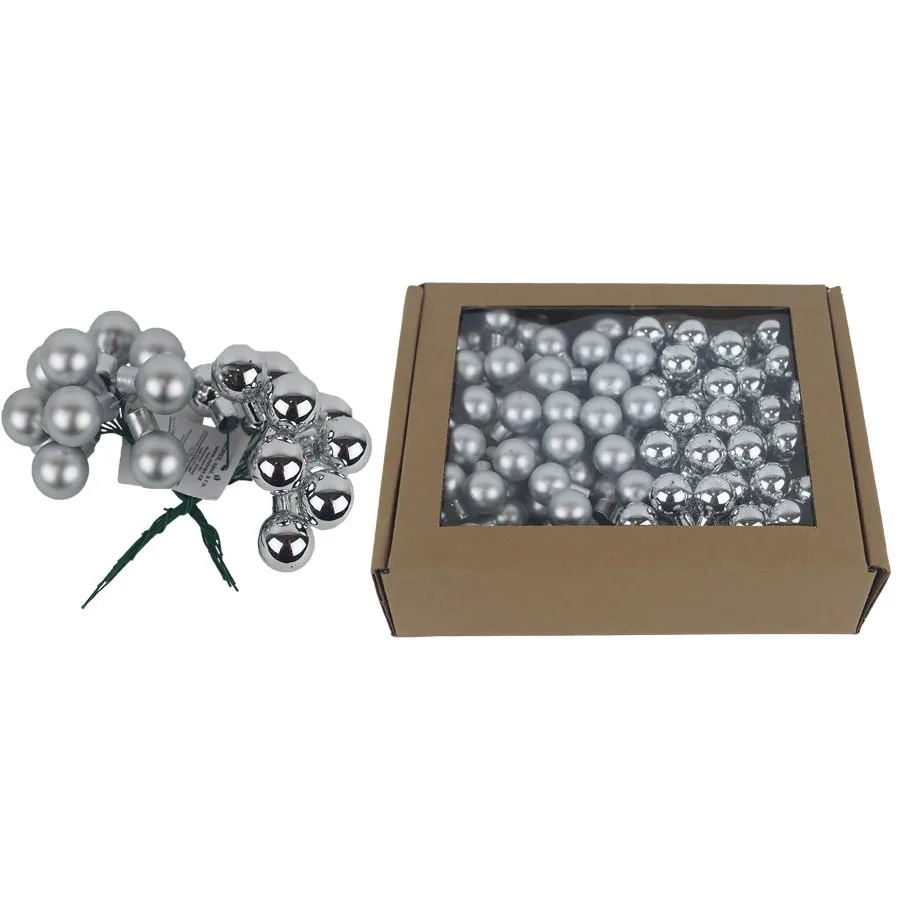Glass decoration on wire silver, dia. 2cm, S0570-28/BOX 144 pcs