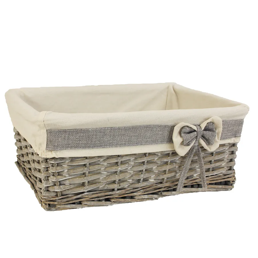 Grey basket with fabric large. Dimensions: Please note all dimensions are approximate, the baskets are all handmade and therefore unique. The dimensions given are an indication of the approximate size, also the color may little vary slightly. Variance of size +-2 cm.