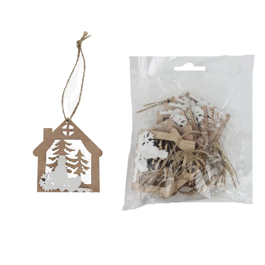 Set of decorative houses for hanging. The set contains 10 houses. Dimensions: Color: natural. Wood-based material.
