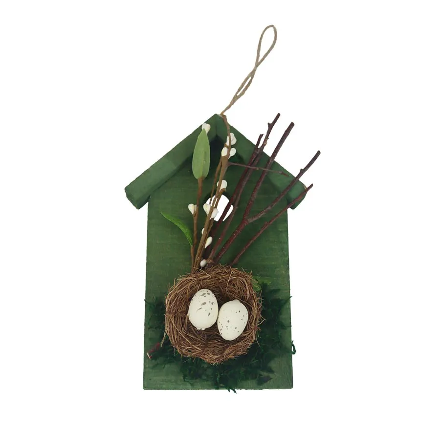 Decorative house with eggs to hang.