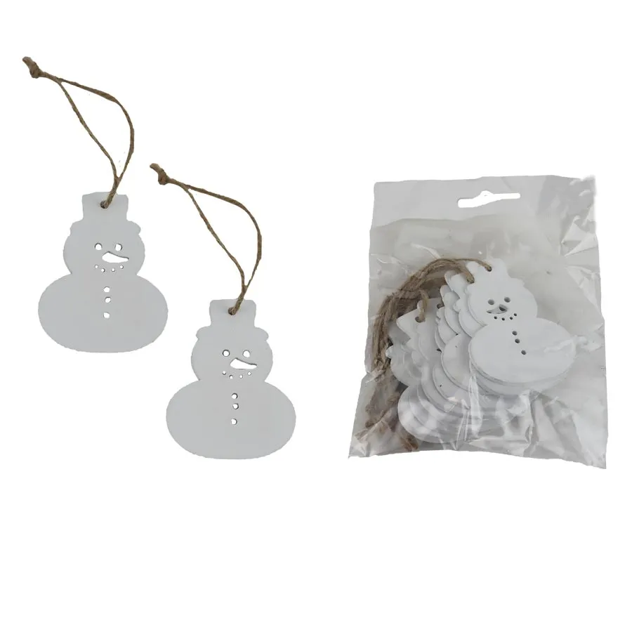Set of decorative snowmen to hang. The set contains 10 snowmen. Dimensions: White color. Wood-based material.