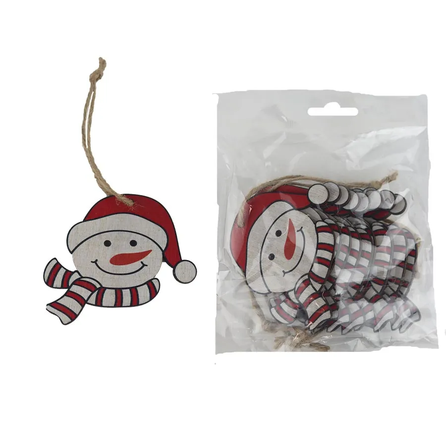 Set of snowmen to hang. The set contains 10 snowmen. Dimensions: Color: combination white, red. Wood-based material.