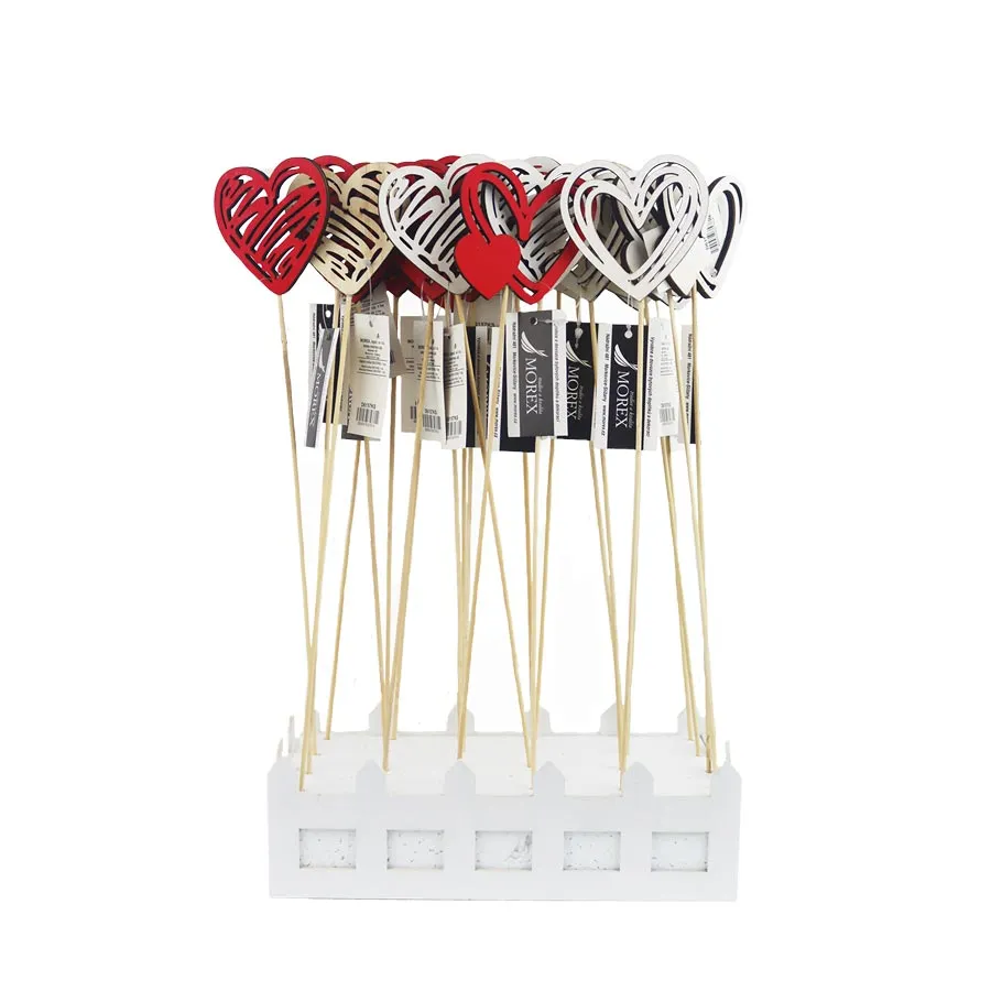 Set of decorative indentations - hearts. The set contains 24 notches. Dimensions: 6.5 - 7 x 6 - 6.5 cm, total height 35 cm. Color: combination red, white. Wood-based material.