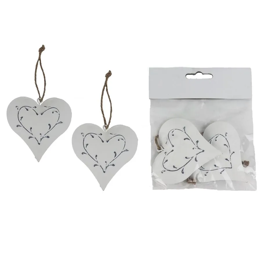 Set of decorative hearts for hanging. The set contains 2 hearts. Dimensions: 7.8 x 7.8 cm, thickness 1.5 cm. White color. Material: metal.