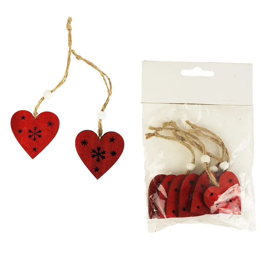 Set contains 6 pcs. Size: width 3.8 cm, thickness 0.5 cm, height 3.8 cm. Color: red. Material: wood.