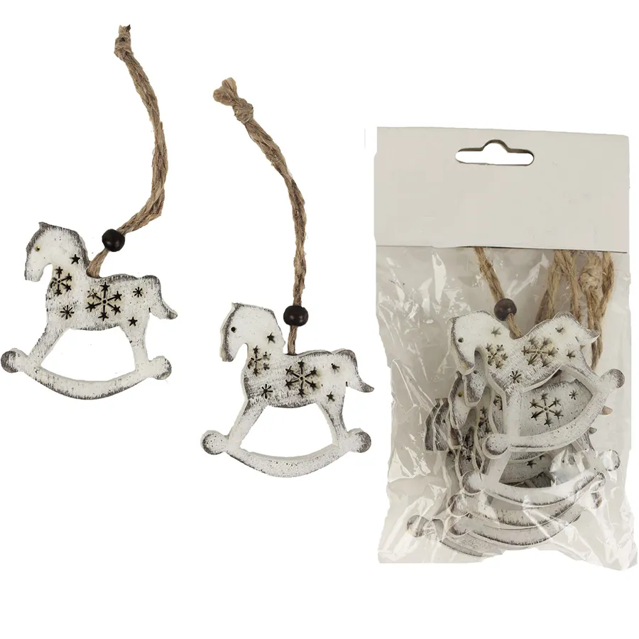 Set contains 6 pcs. Size: width 5 cm, thickness 0.5 cm, height 4.8 cm. Color: white. Material: wood.