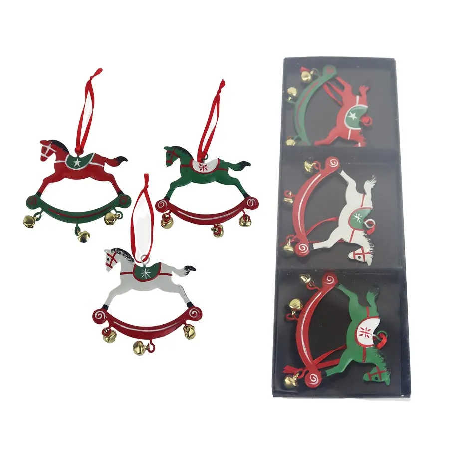 Set of decorative horses for hanging. The set contains 3 horses. Dimensions: Color: combination of red, white, green. Material: metal.