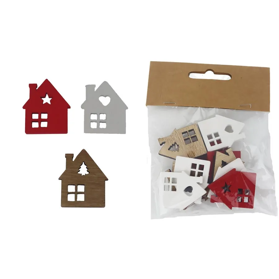 A set of decorative houses. The set contains 12 houses in three colors.