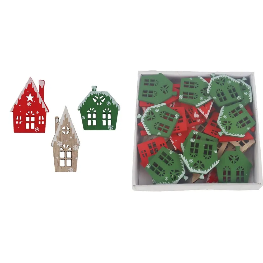 Set of decorative houses. The set contains 36 houses. Dimensions: Color: combination red, green, brown. Wood -based material.