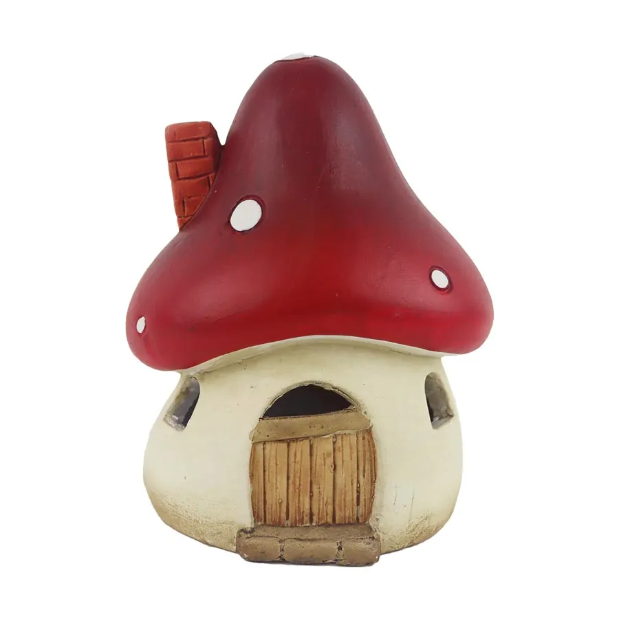 Decorative house in the shape of a mushroom with LED lighting.