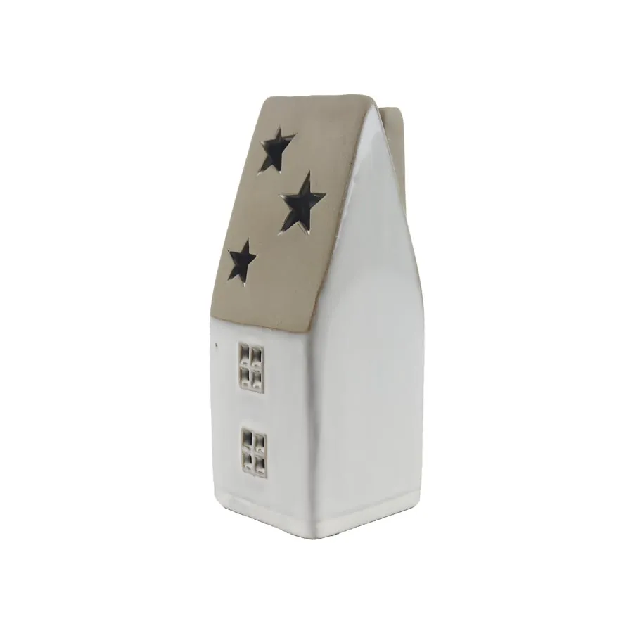 Decorative house with LED lighting. The decoration includes 2 x LR44 batteries.