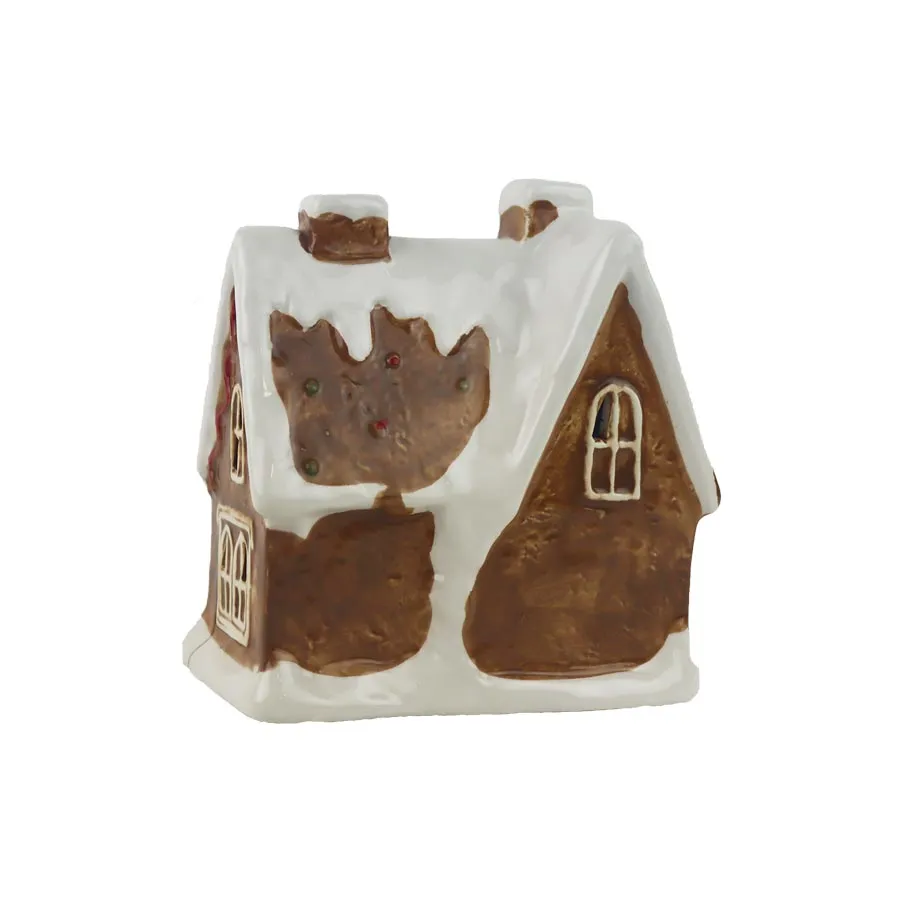 Gingerbread house decoration with LED lighting.