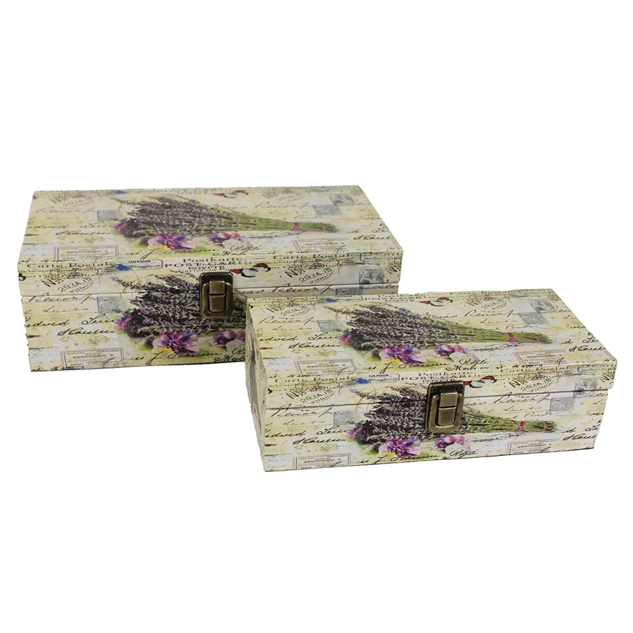 A beautiful set of jewelry boxes with the motif - Lavender. This set includes 2 jewelry boxes. Small jewelry box: measures 24 x 12 cm, height 7 cm. The large jewelry box has dimensions of 29 x 15 cm, height 9 cm. Material - MDF board, surface - canvas.