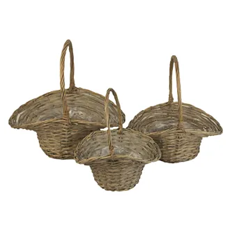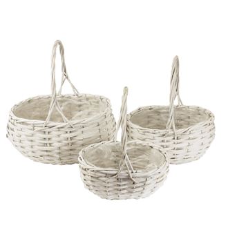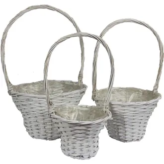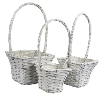 Equip your house or apartment with practical and perfect-looking accessories. We present beautiful wicker flower baskets of various dimensions. Flower baskets made of natural material stand out for their lightness. Choose from our offer of oval, round or square baskets with one or two handles. The flower binding basket is an original accessory that brings every room to life. Do not hesitate to buy a whole set of flower baskets in different shades and colours - white, brown or grey.