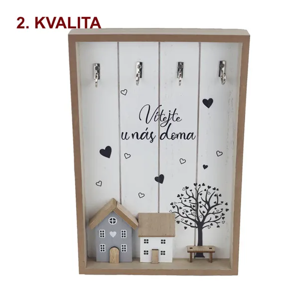 The key box is in 2nd quality, worn in places, taped, and some hooks are missing.