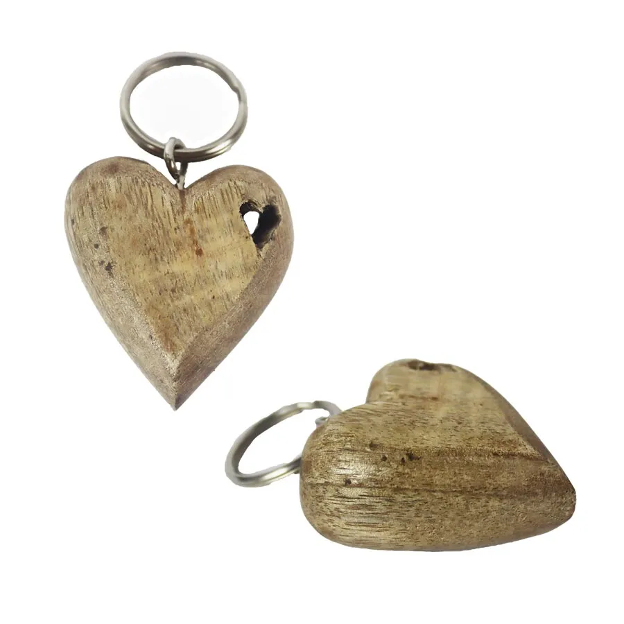 Heart-shaped wooden keyring.