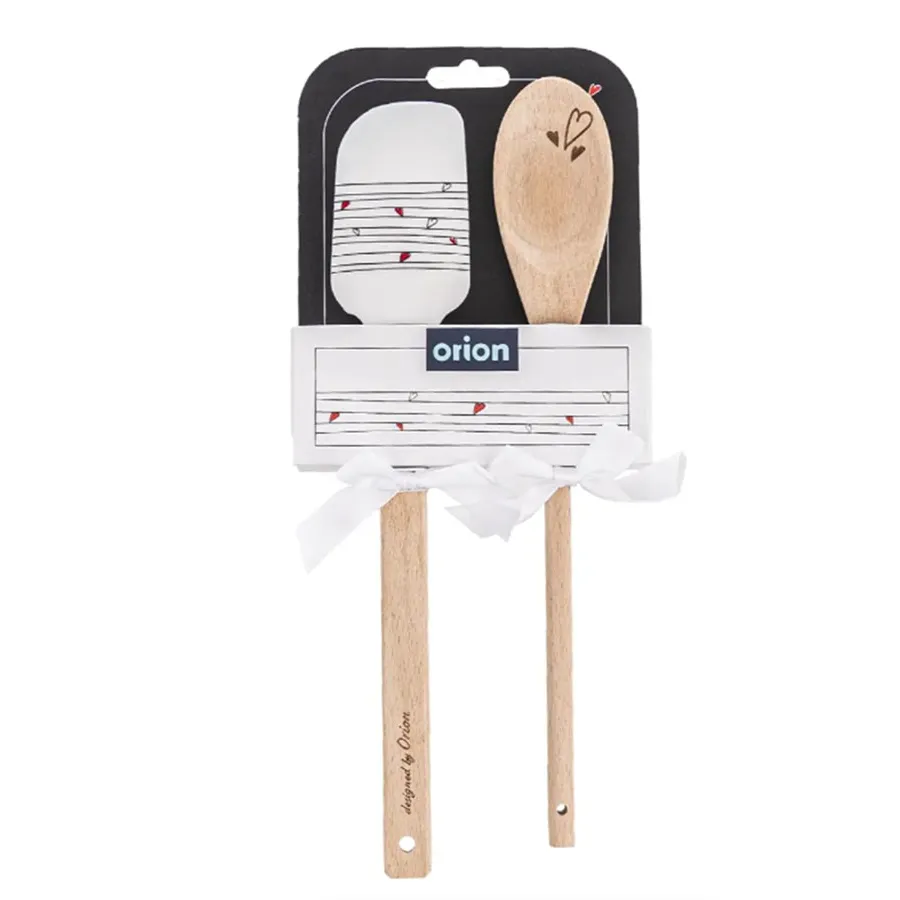 Set of kitchen spatula and wooden spoon with a motif can be a great gift or token of appreciation.