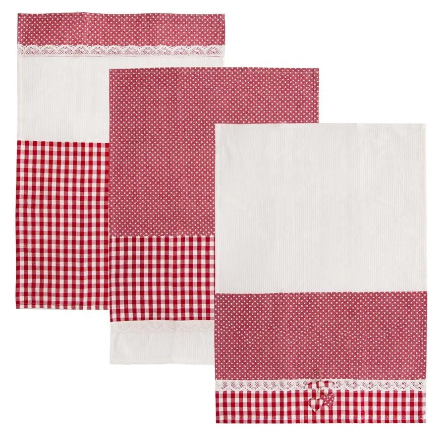 Kitchen towel. Cotton DOT Gift 3 pcs red O0046