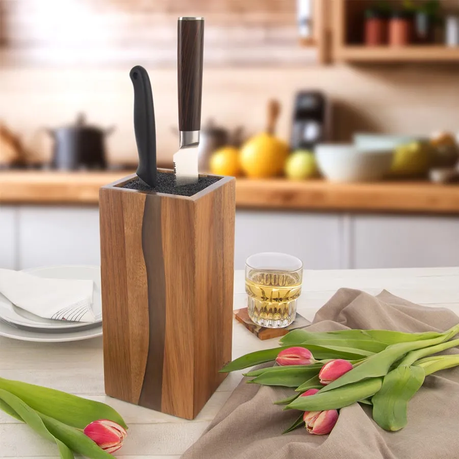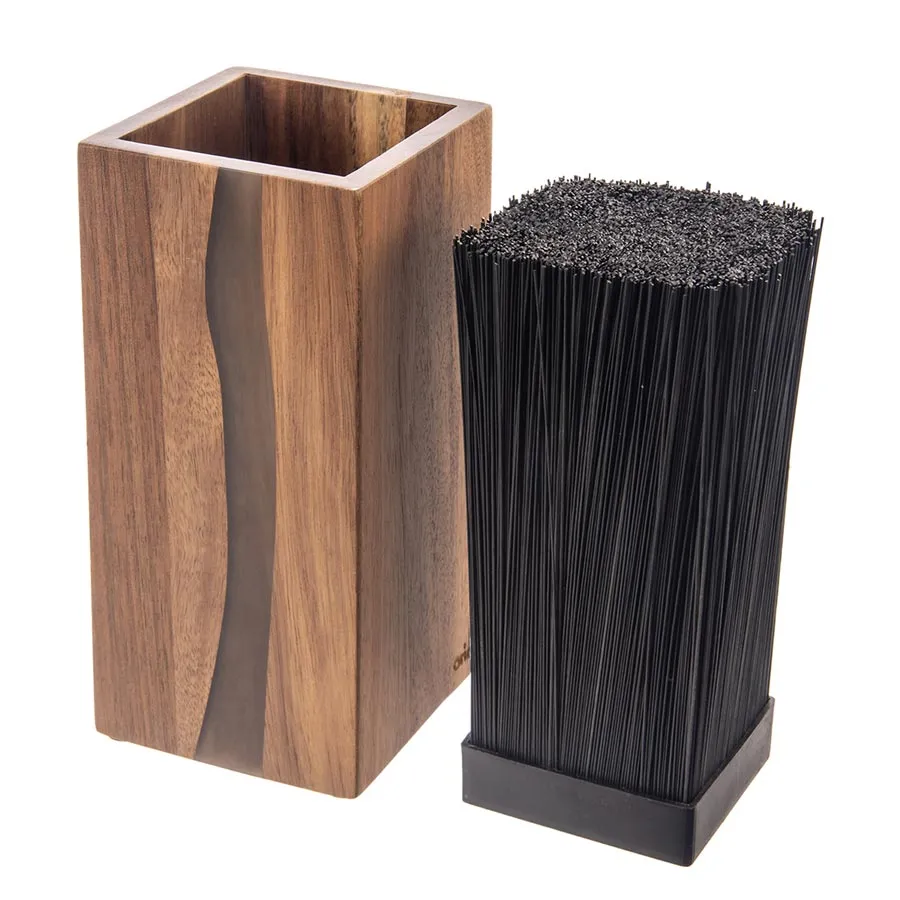 The stand is completed with plastic bristles that ensure safe storage of knives, scissors and other kitchen tools.