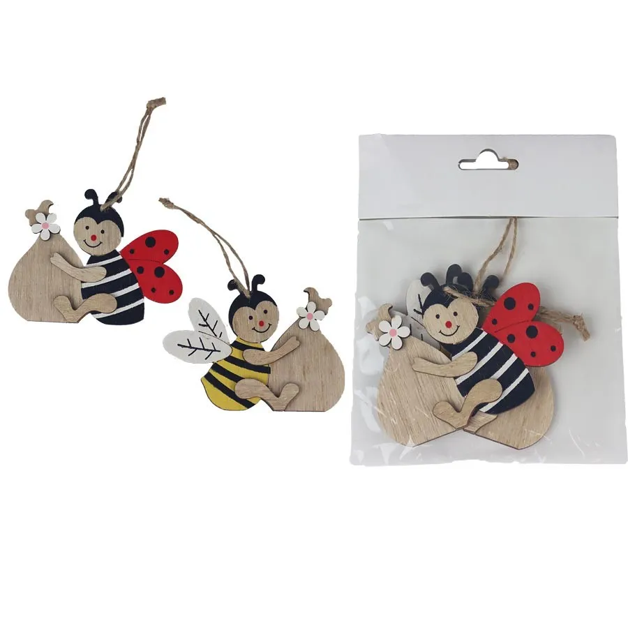 Set of decorations to hang. The set contains 2 decorations. Dimensions: 9.6 x 0.3 cm, height 7 cm. Color: combination of natural, black, red, yellow, white. Wood-based material.