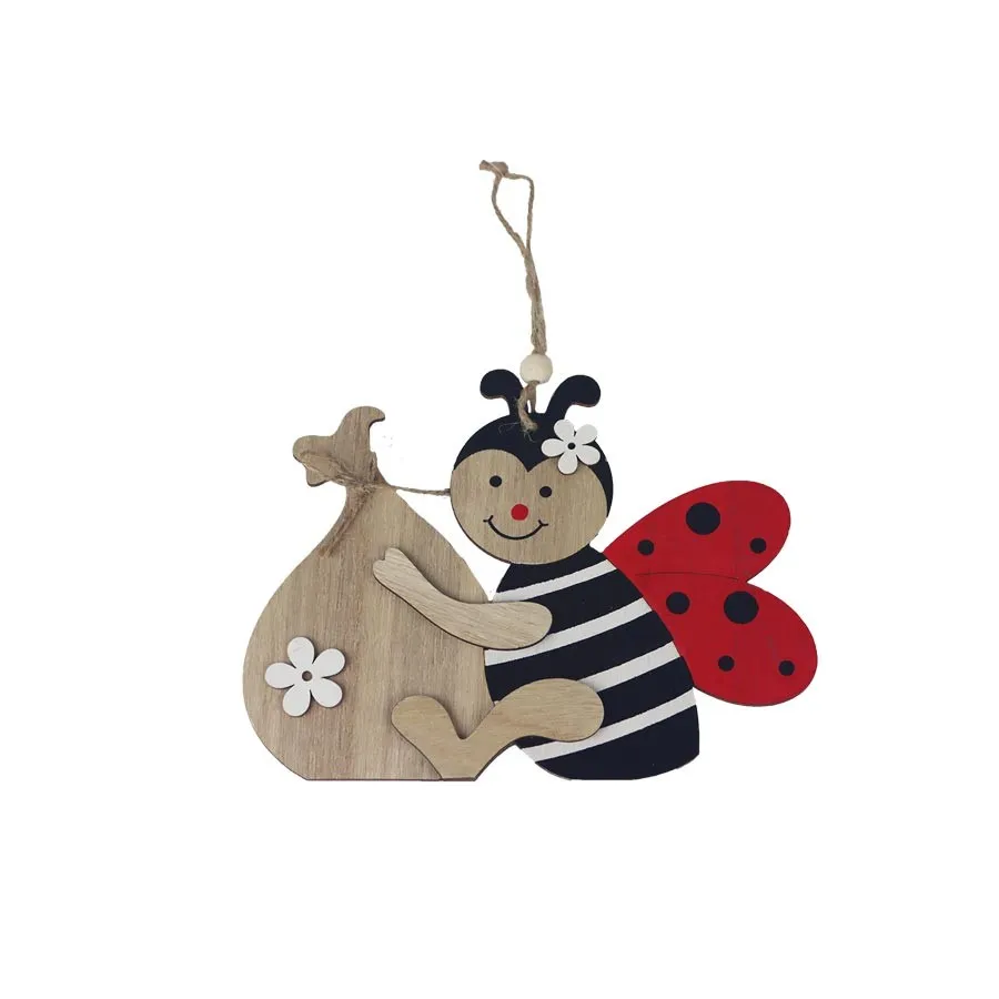 Decorative ladybug for hanging. Dimensions: 20 x 15 cm, thickness 0.5 cm. Color: combination of natural, red, black, white. Wood-based material.