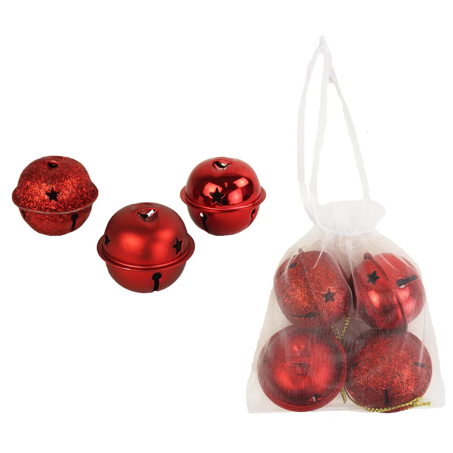 Set - jingle bells. Contains: 4 pcs. Size: dia 4 cm, height 3,5 cm. Color: red. Material: metal.
