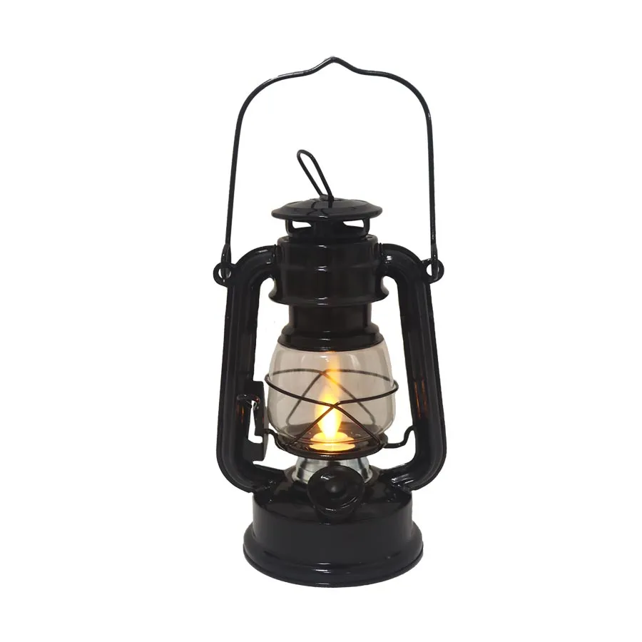 Metal lantern with LED lighting.