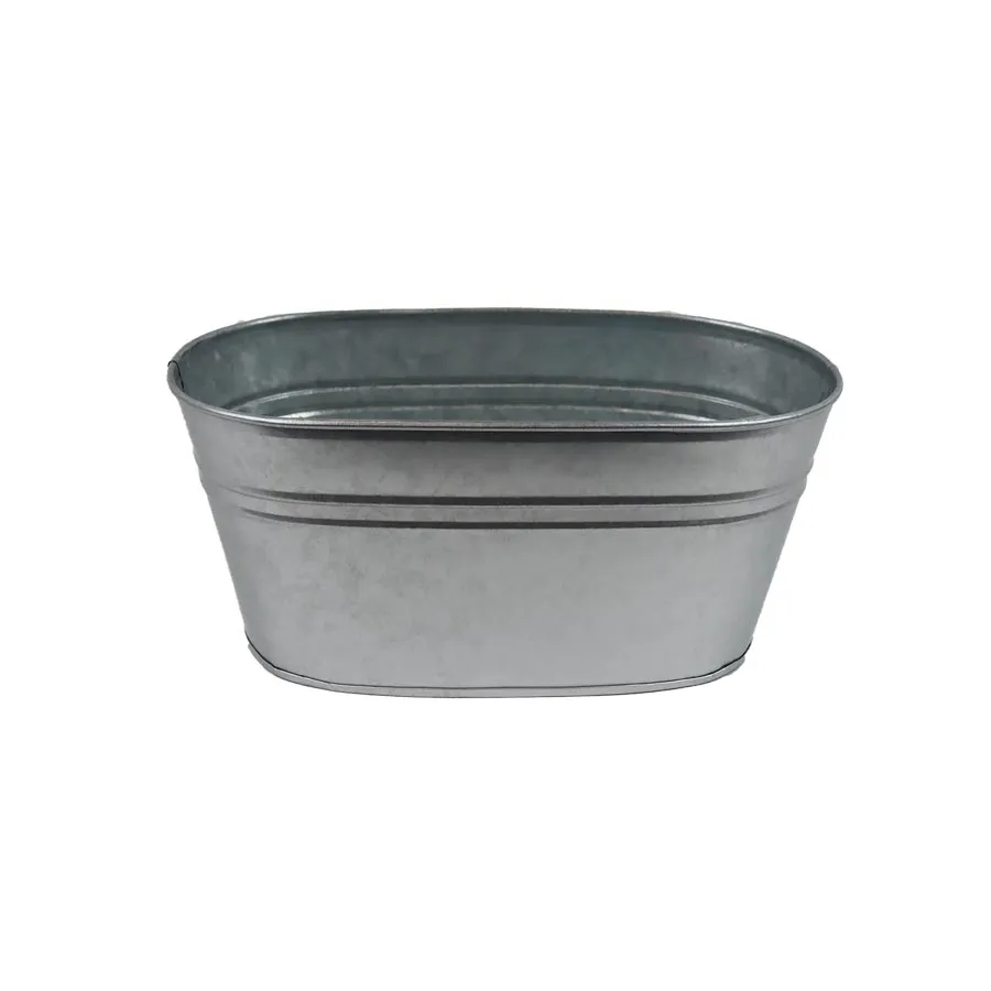 Oval tin flower pot.
