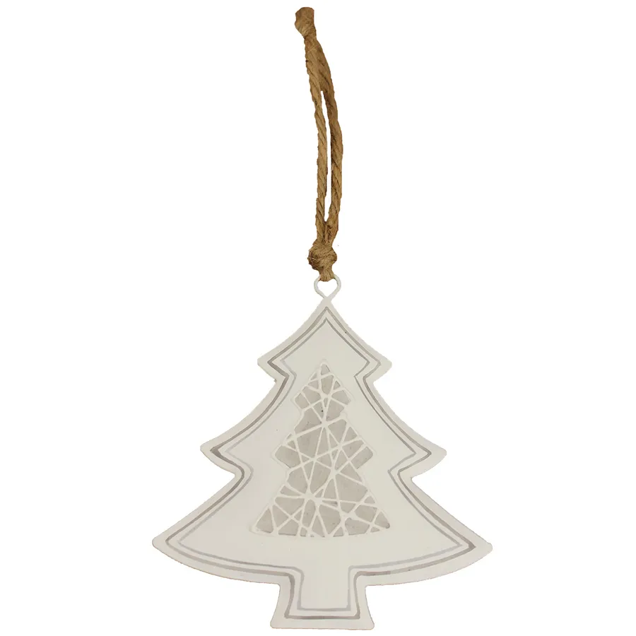 Hanging tree. Size: width 13 cm, thickness 1,5 cm, height 13 cm. Color: combination white, grey. Material: metal.