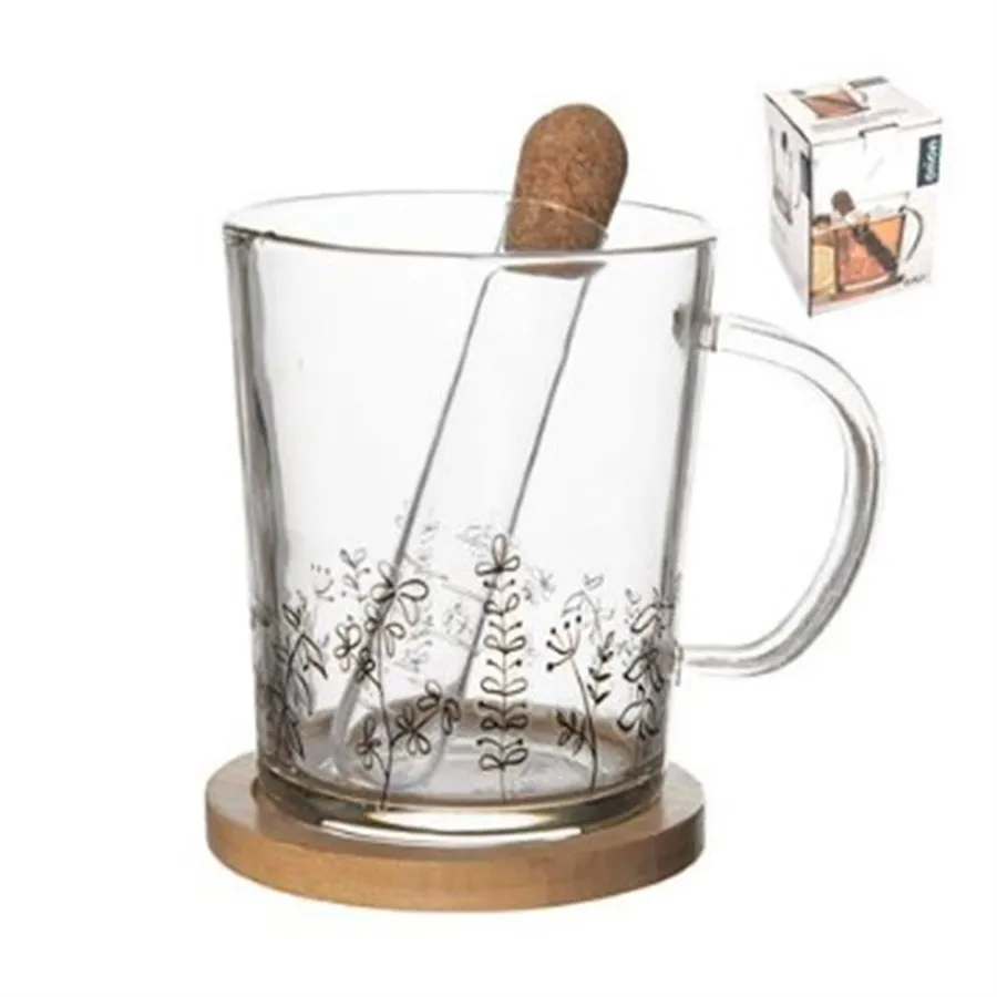 Mug glass/bamboo saucer+infuser LOUKA 0.42 ll O0271