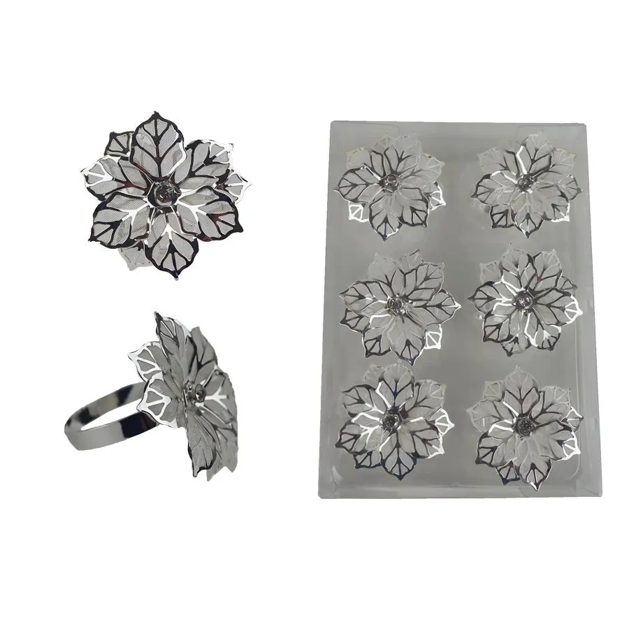 Napkin decorations set. The set contains 6 decorations. Dimensions: diameter 5 cm, height 5 cm. Color: silver. Material: metal.