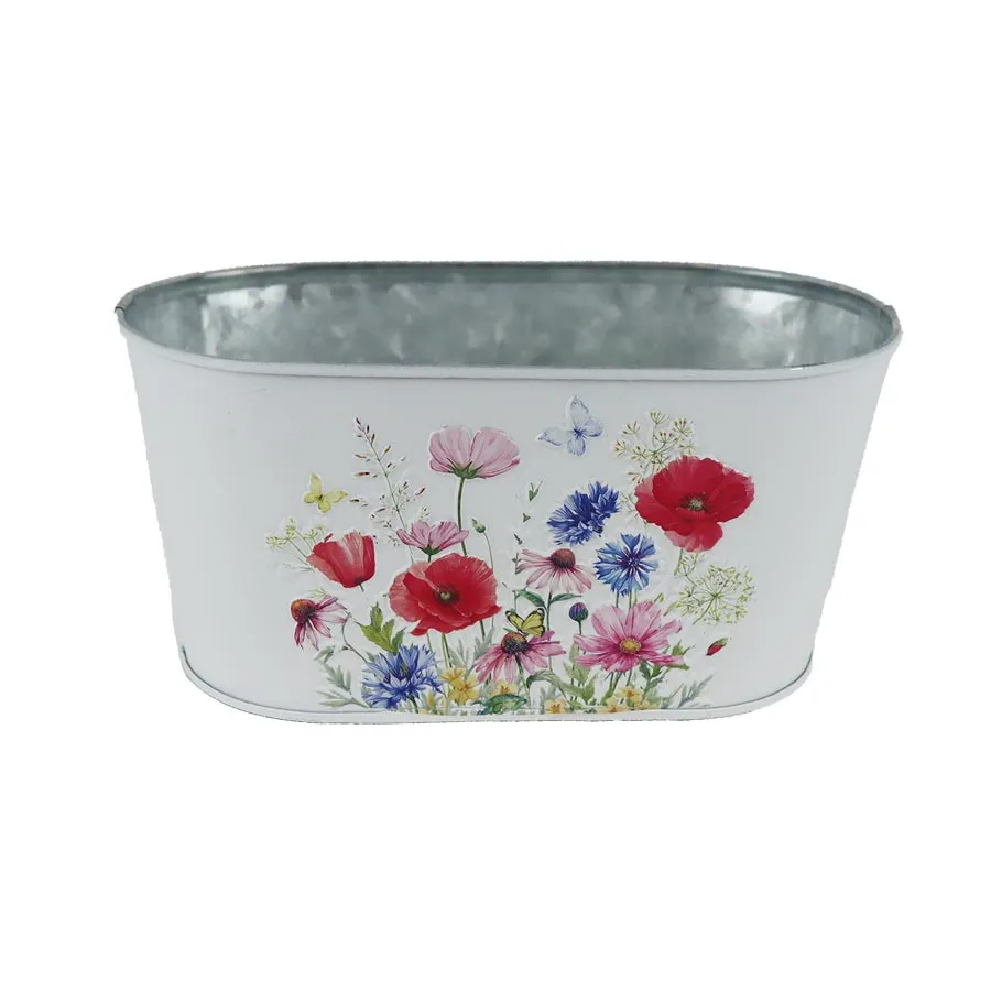 Oval tin flower pot K4689/1