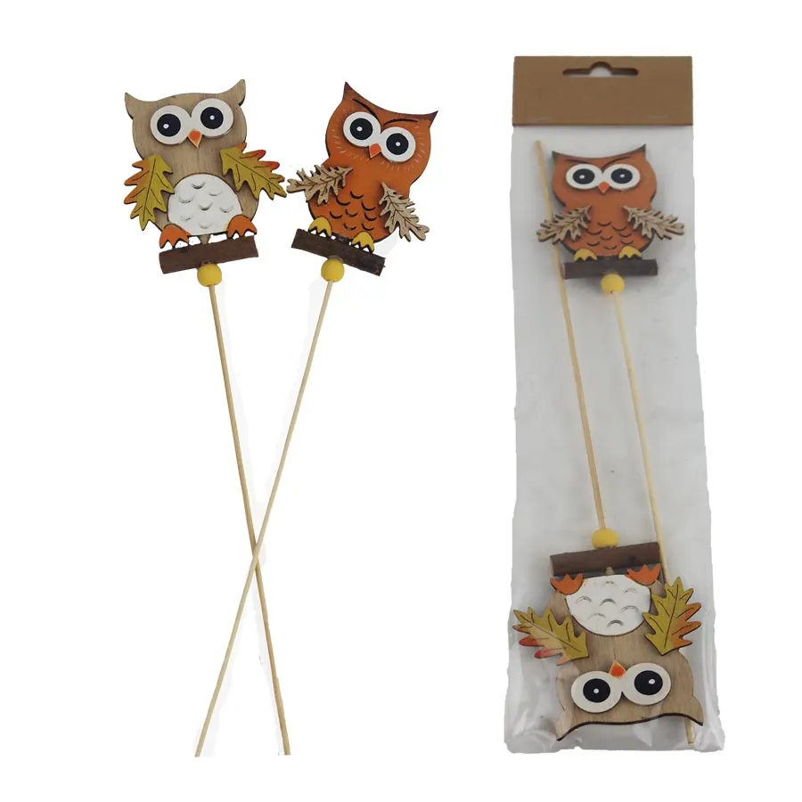 Set of decorative grooves owls. Set contains 2 grooves. Dimensions: Color: combination of orange, natural, white. Wood -based material.