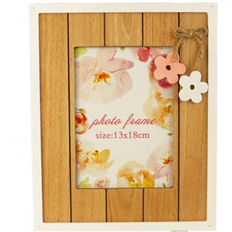 Photo frame. The photo frame is in 2nd quality. Some are scratched from the front, some from the back (photos). The photo frame has a width 17.7 cm, a thickness 1.2 cm, a height 22.8 cm. The photo frame has a photo size 11.5 x 16.6 cm. Material: MDF, glass.