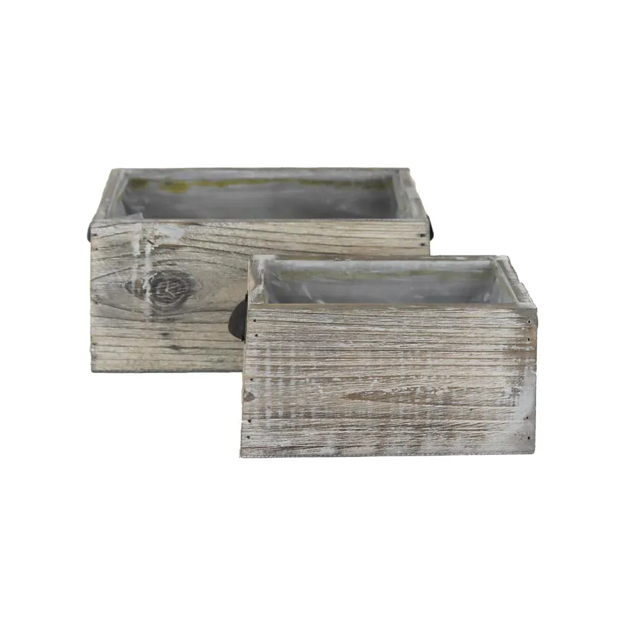 A set of wooden packaging with plastic for planting. The set contains 2 cases of two sizes. The small package has dimensions: 17 × 9.5 cm, height 9 cm. The large package has dimensions: 22.5 × 13.5 cm, height 10 cm.