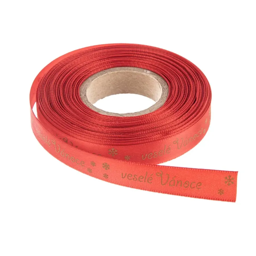 Red polyester ribbon with "Merry Christmas" print is ideal for wrapping Christmas gifts or decorating Christmas decorations.